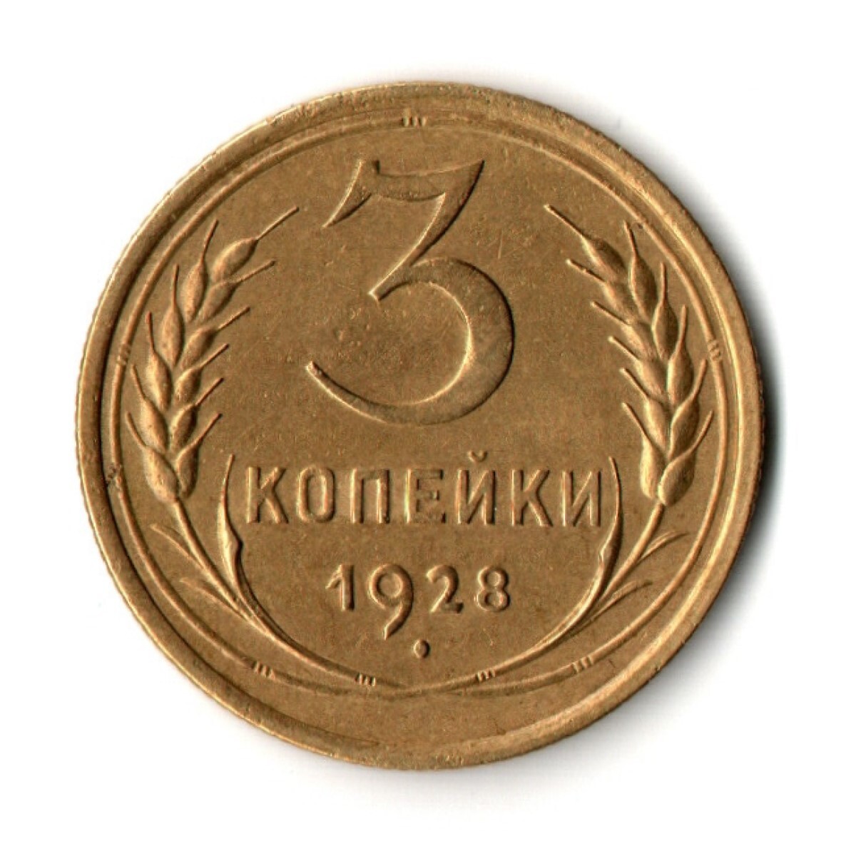 3 копейки 1928 г. Рельеф. Без дефектов XF