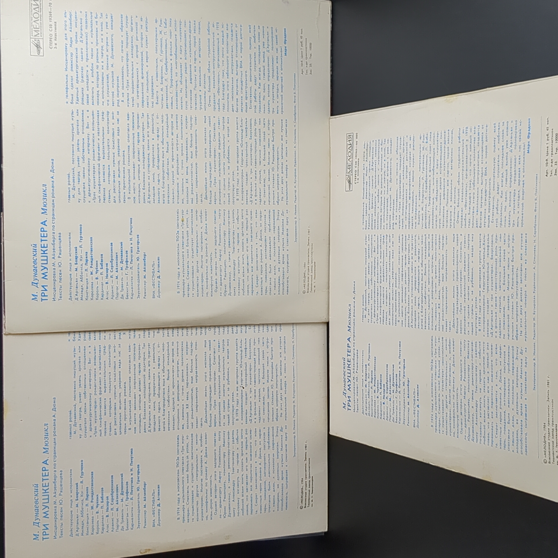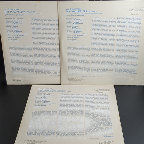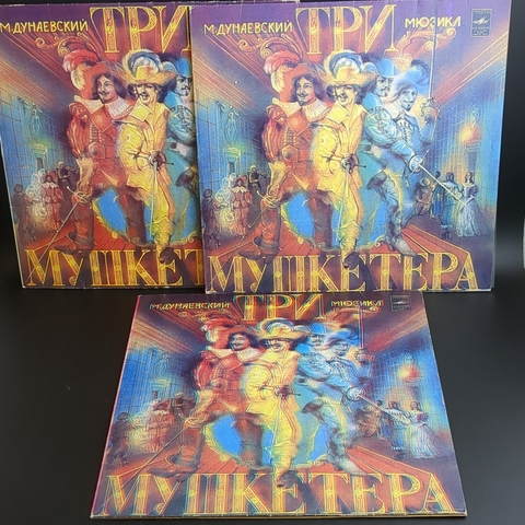 3 LP Мюзикл Три мушкетёра. М. Дунаевский. Комплект из 3 Виниловых пластинкок 12 дюймов . Мелодия 1984 год СССР. Конверты EX- / Диски VG+