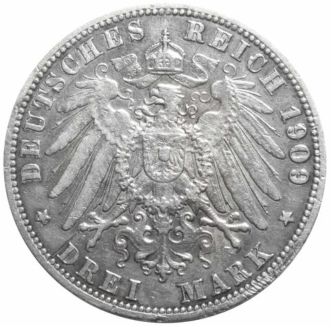 3 марки (A) Германия-Пруссия. 1909 год. XF+