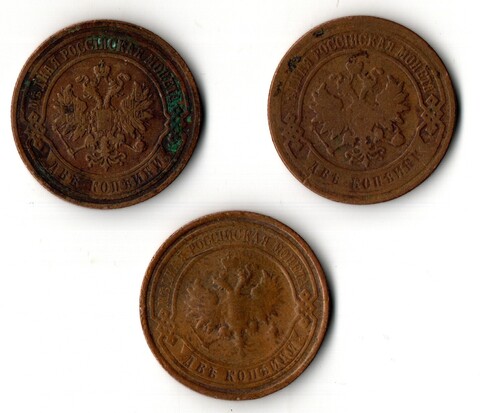 3 монеты Николая II 1904, 1906, 1914 гг. Российская Империя. Медь