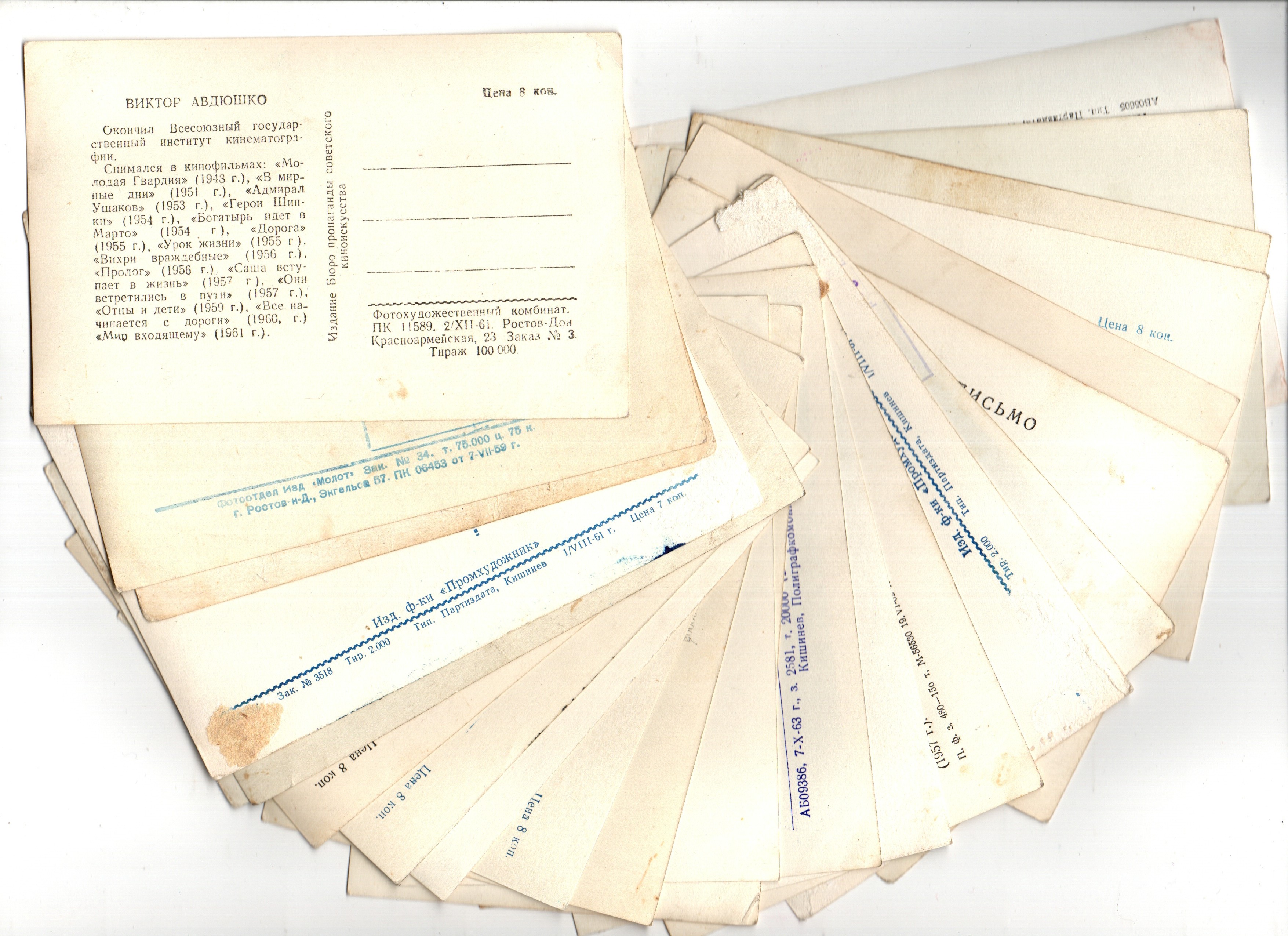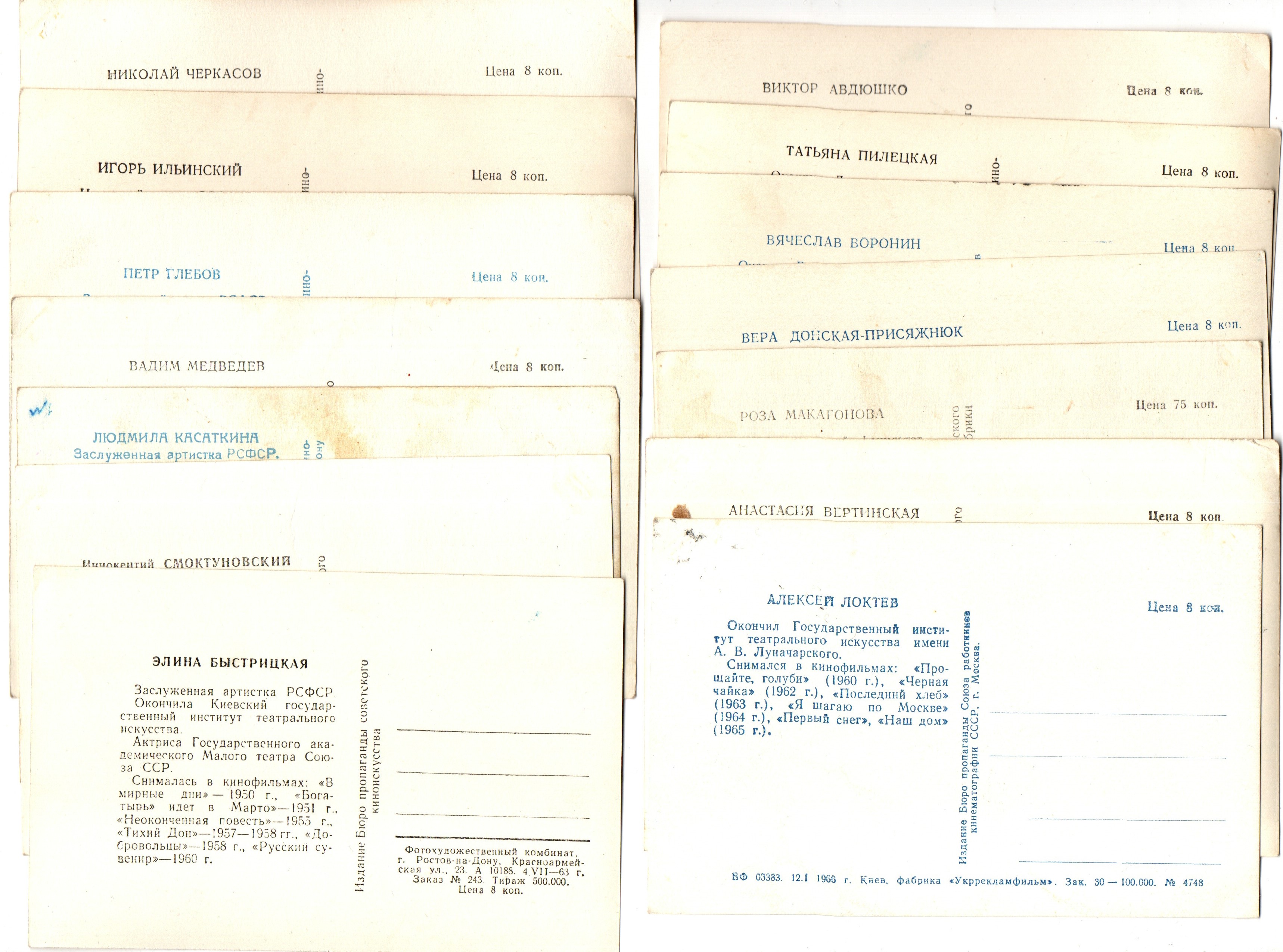 №3 Подборка открыток с артистами СССР - 1950-е - 1960-е годы - 25 штук — чистые, ч/б, без повторов
