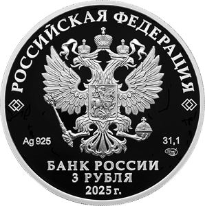 3 рубля «150 - летие тенниса в России 2025 год. 3 рубля теннис 2025