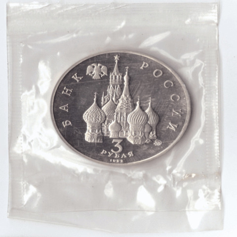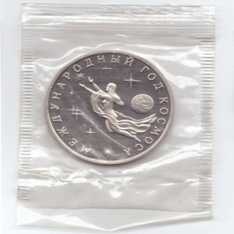 3 рубля 1992 года Международный год космоса (в запайке) PROOF №2