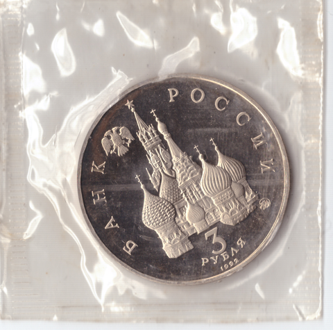 3 рубля 1992 года международный год космоса (в запайке) PROOF №2