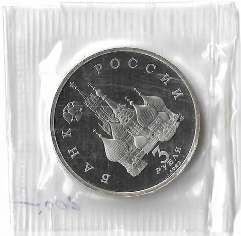3 рубля 1992 ЛМД ''750-летие Победы Александра Невского на Чудском озере'' в родной запайке (Proof)