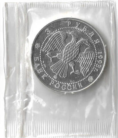 3 рубля 1993 ММД "Русский балет - дуэт - танцующая пара" в родной запайке (UNC)