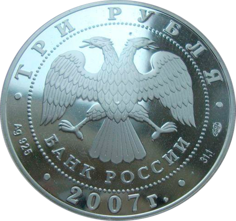 3 рубля 2007 Андрей Рублев СЕРЕБРО