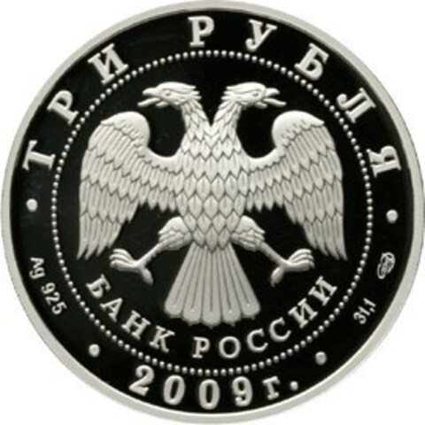 3 рубля 2009 г. 50-летие начала исследования Луны космическими аппаратами Космос. Серебро PROOF