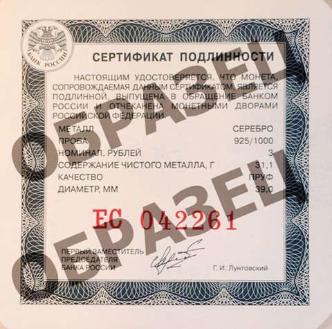 Аверс: на лицевой стороне монет расположено рельефное изображение Государственного герба Российской Федерации, имеются надписи: «РОССИЙСКАЯ ФЕДЕРАЦИЯ», «БАНК РОССИИ», номинал монет и дата, обозначение металла по Периодической системе элементов Д.И. Менделеева, проба сплава, товарный знак Московского монетного двора и масса драгоценного металла в чистоте.