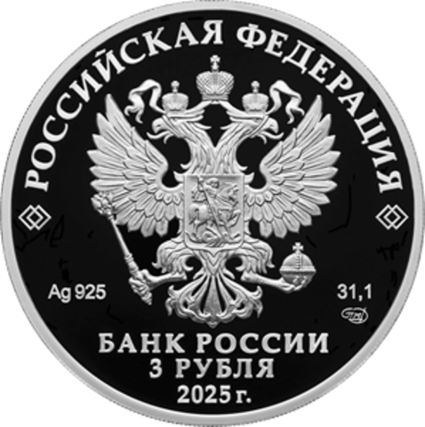 3 рубля 300-летие начала первой Камчатской экспедиции В. Беринга 2025 год