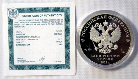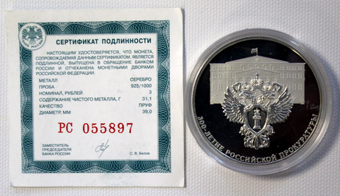 3 рубля 300-летие Российской прокуратуры 2022 год (сохранность на фото)