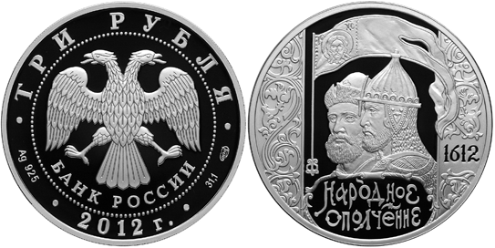 3 рубля 400-летие народного ополчения Козьмы Минина и Дмитрия Пожарского 2012 г. Proof