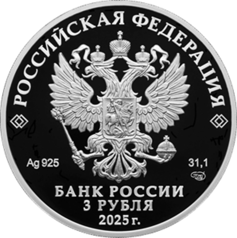 3 рубля «50-летие мягкой посадки спускаемых аппаратов на Венеру и получения панорамных изображений поверхности Венеры» серии «Космос» 2025 год