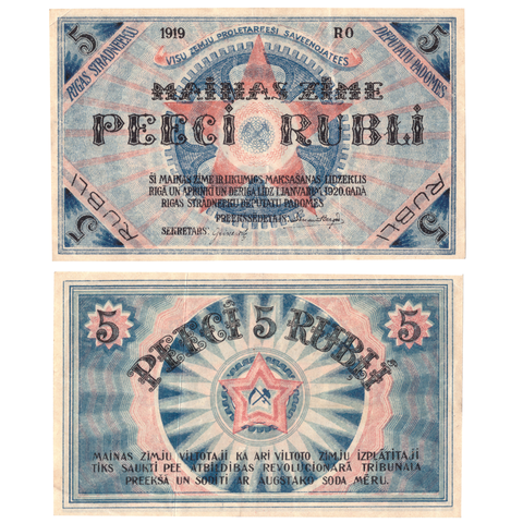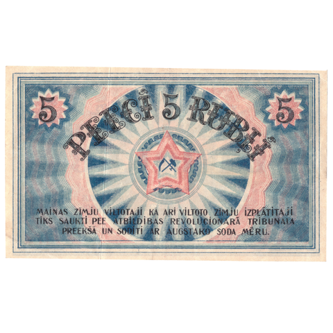 5 рублей Рижский Совет Рабочих Депутатов. Латвия Рига 1919 год