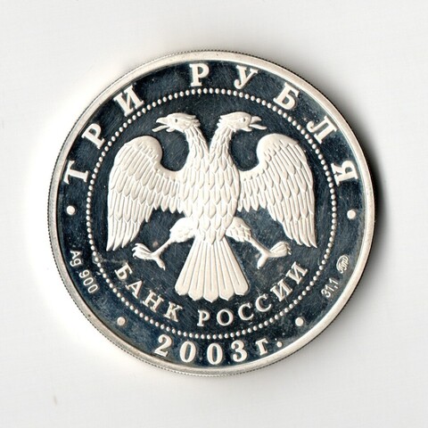 3 рубля Лев "Знаки зодиака" 2003 год. Серебро (следы пальцев, микроцарапины)