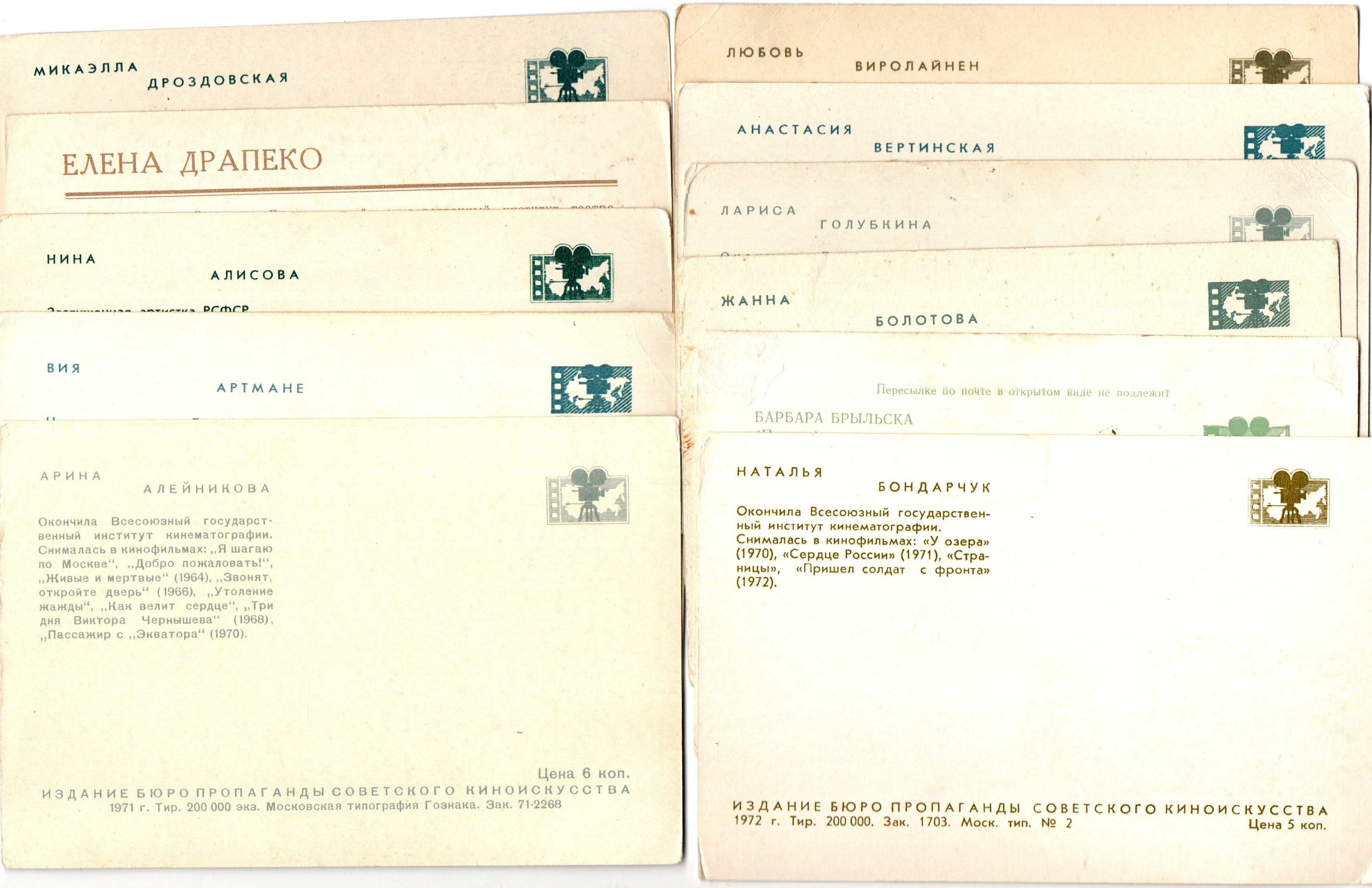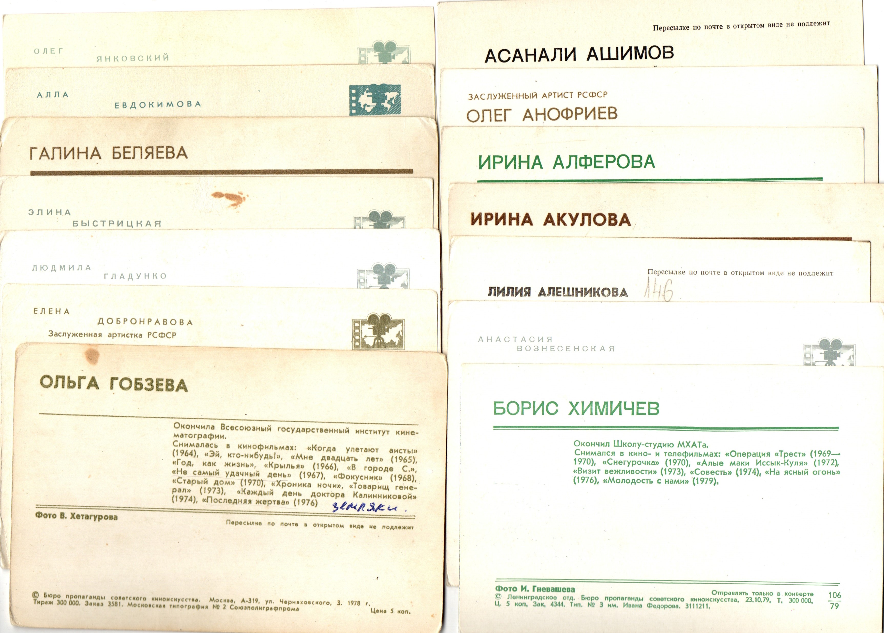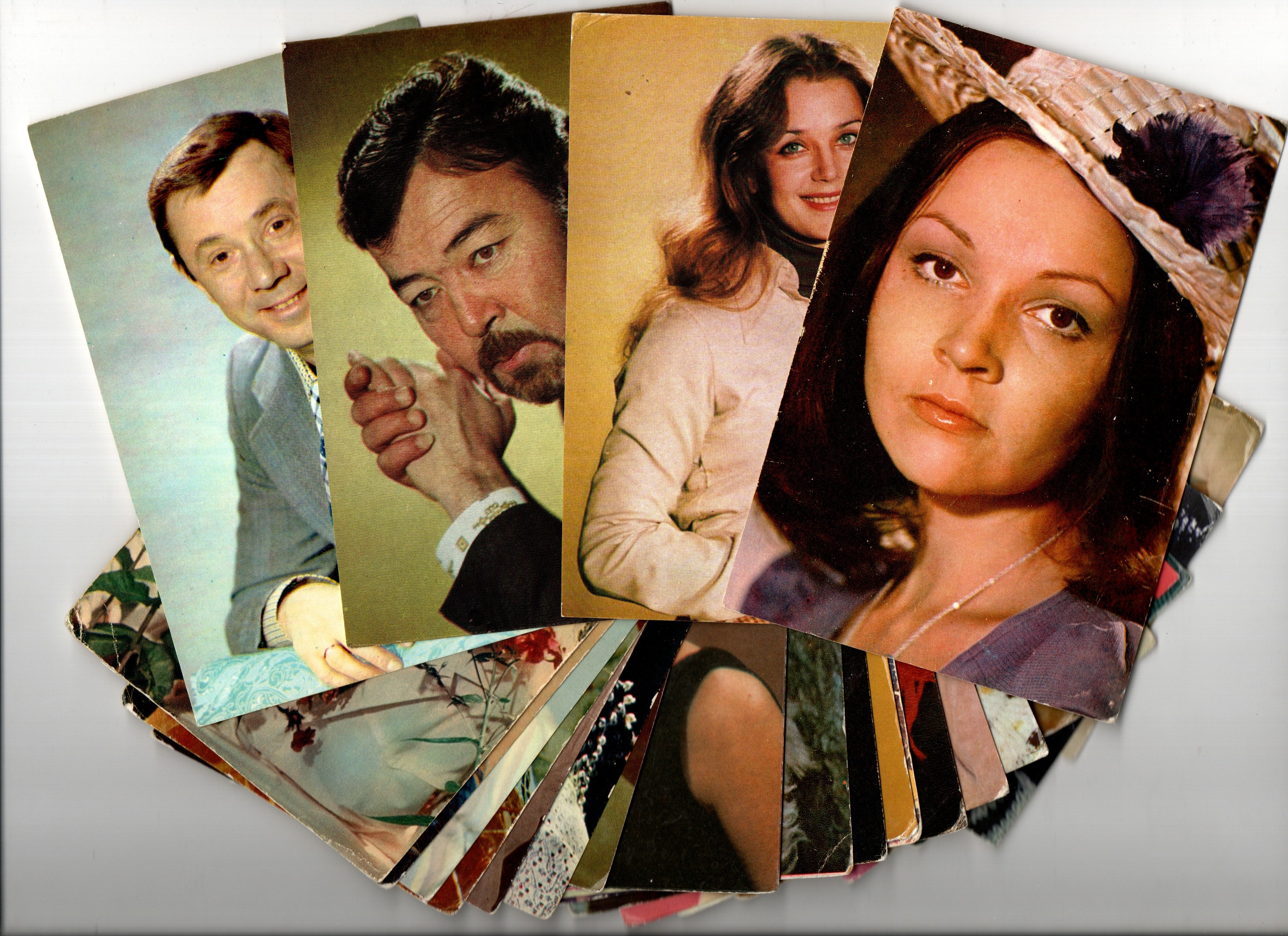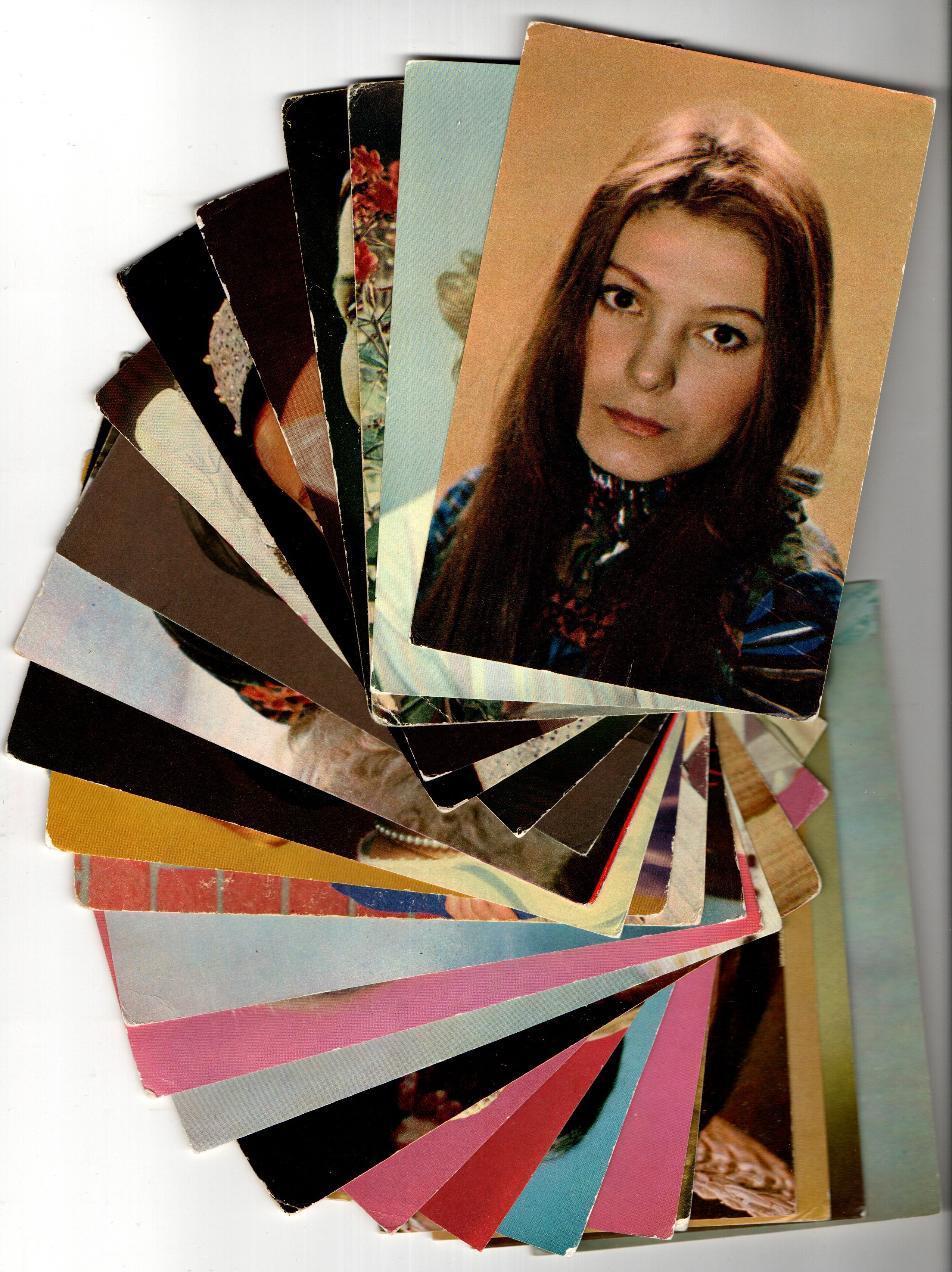 №32 Открытки Артисты и актёры СССР 1970–1980-е г. 25 штук. Цветные, чистые, без повторов