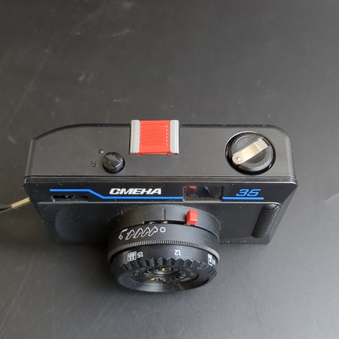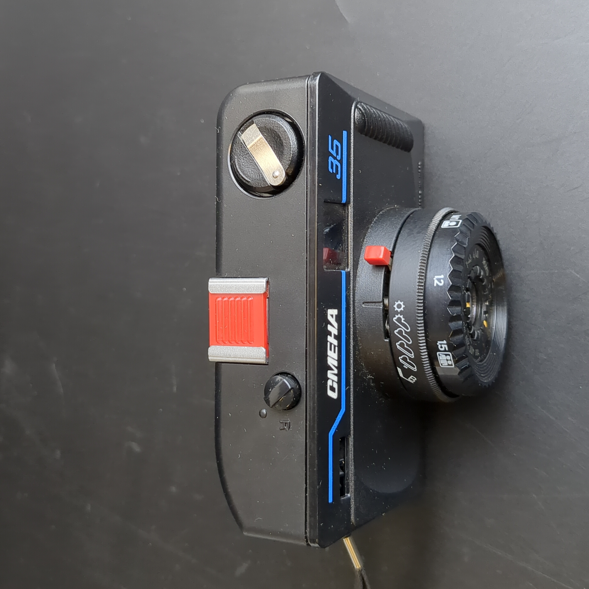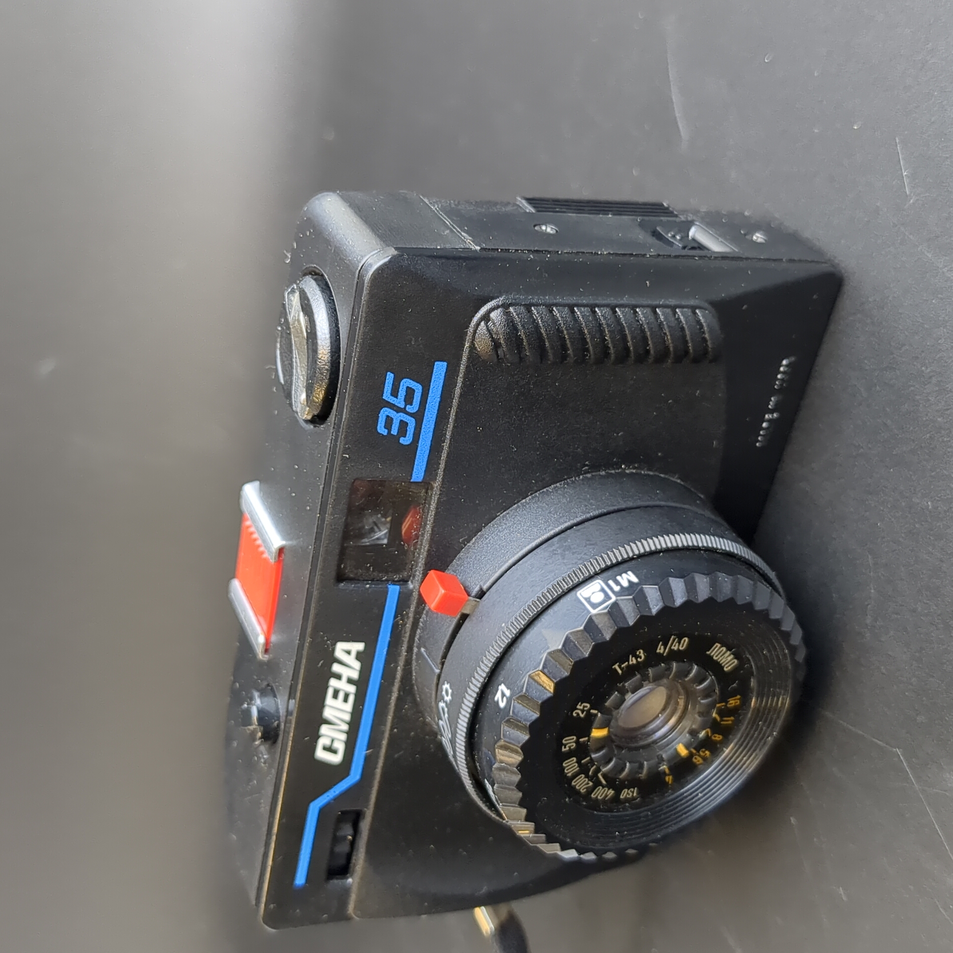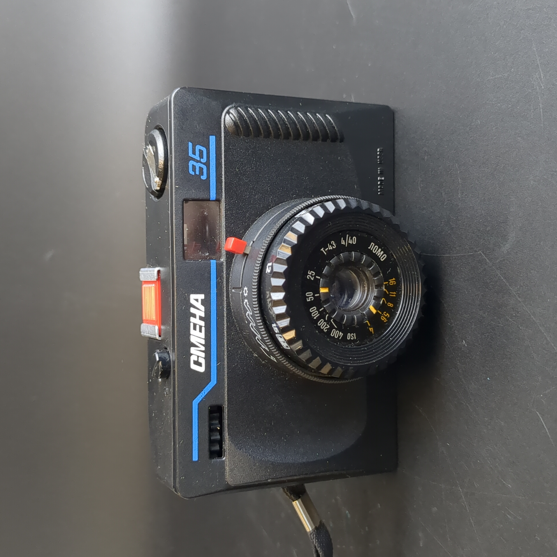 №33 Фотоаппарат Смена 35 с объективом Т-43 4/40, в чехле, композитный материал, стекло, металл, ЛОМО (Ленинградское оптико-механическое объединение), СССР, 1990 г. Рабочий. Состояние на фото