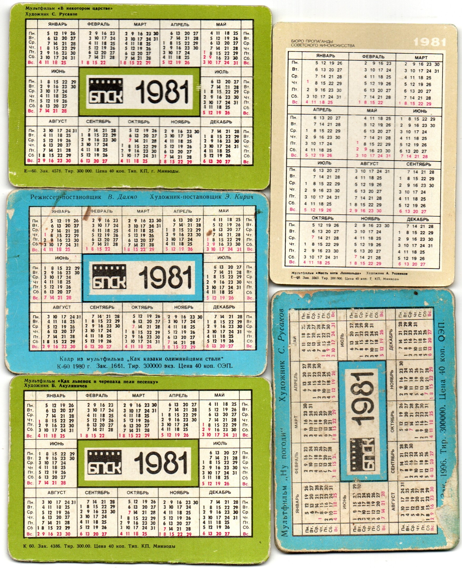 № 33 Набор из 5 стерео Календариков. Мультфильмы СССР 1981 г. Календарик Стерео мультфильмы : В некотором царстве / Как казаки олимпийцами стали / Как львенок и черепаха пели песенку / Месть кота Леопольда / Заяц Волк. Карманный календарик переливной объемный 3D. СССР. Художники СССР. Состояние на фото