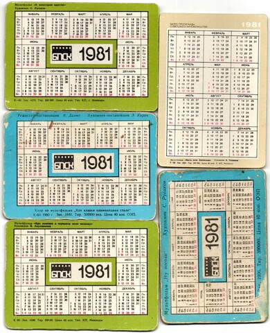 № 33 Набор из 5 стерео Календариков. Мультфильмы СССР 1981 г.