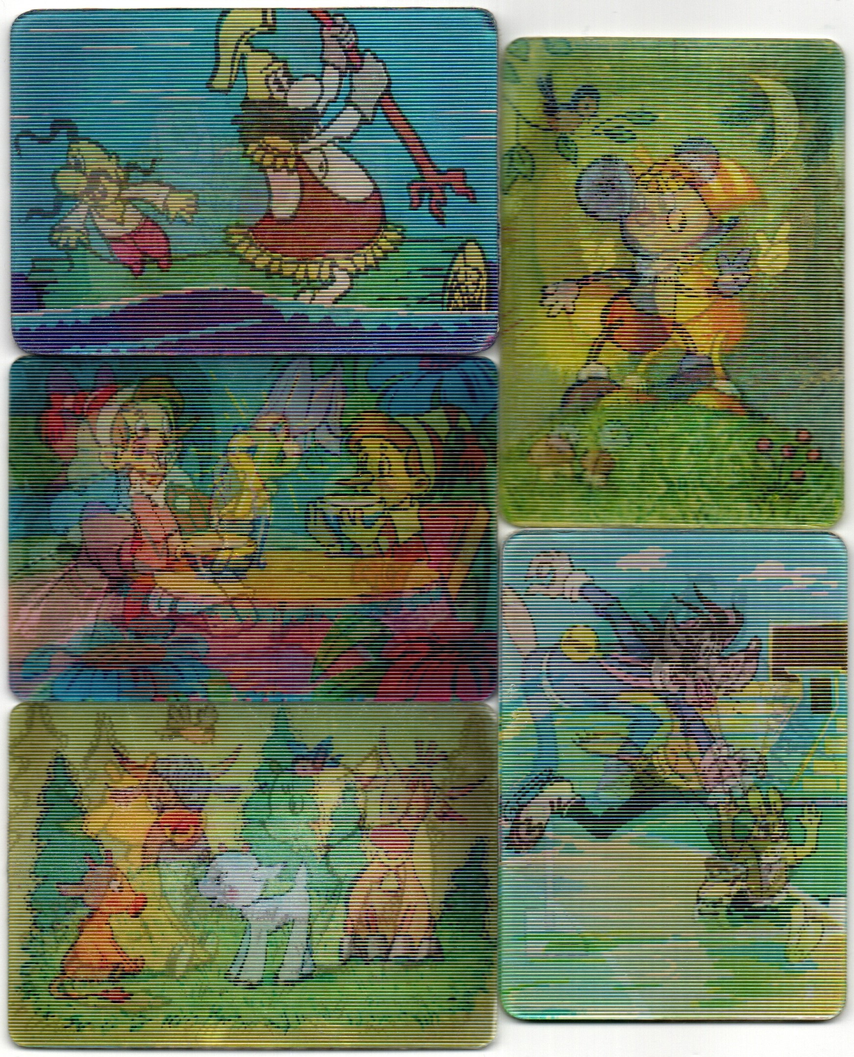 № 34 Набор из 5 стерео Календариков. Мультфильмы СССР 1981 г. Календарик Стерео мультфильмы : Как казаки олимпийцами стали / Приключения Буратино / Заяц Волк / Козленок, который умел считать до 10 / Волшебные фонарики. Карманный календарик переливной объемный 3D. СССР. Художники СССР. Состояние на фото