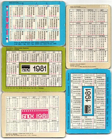 № 34 Набор из 5 стерео Календариков. Мультфильмы СССР 1981 г.