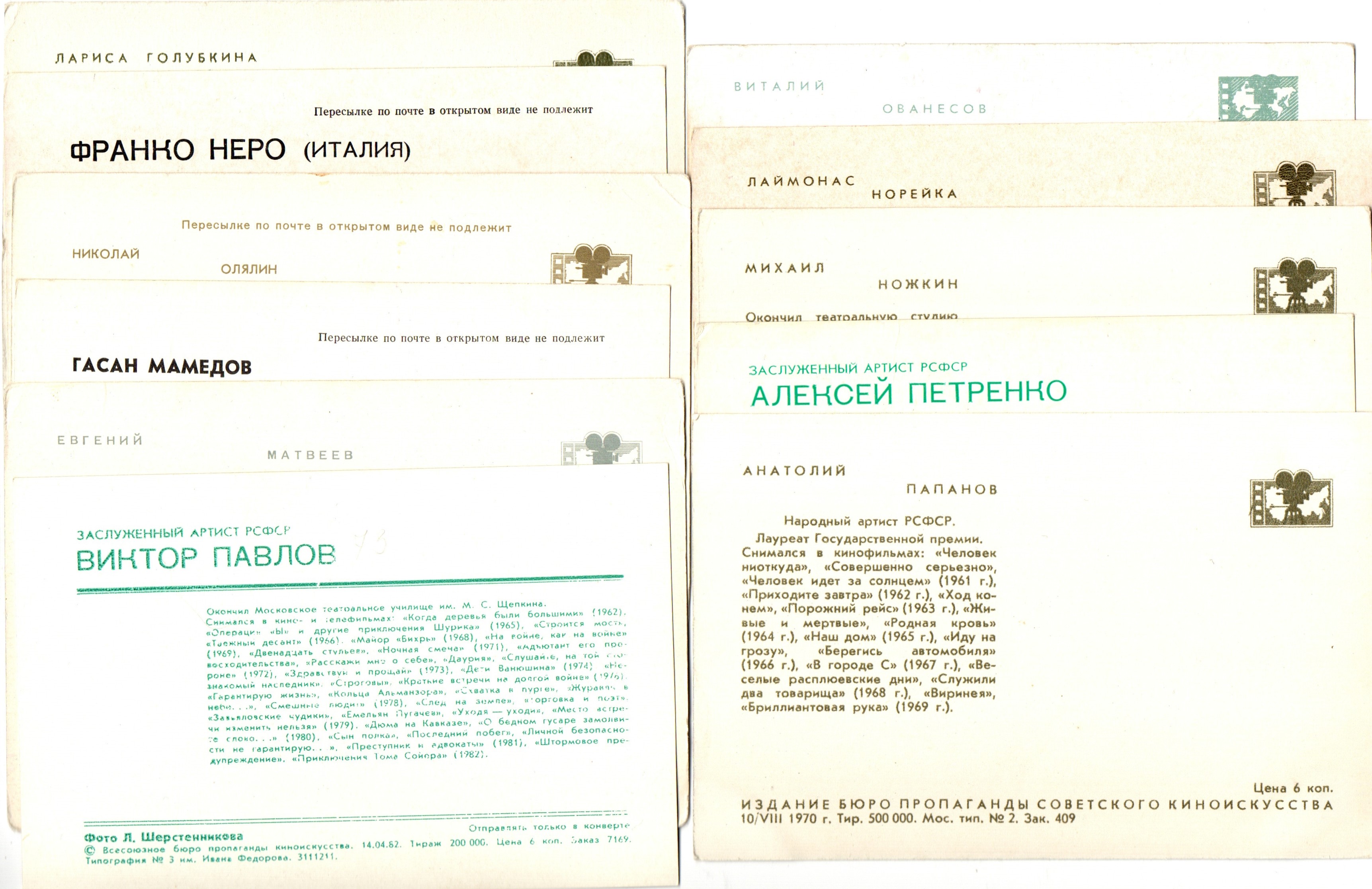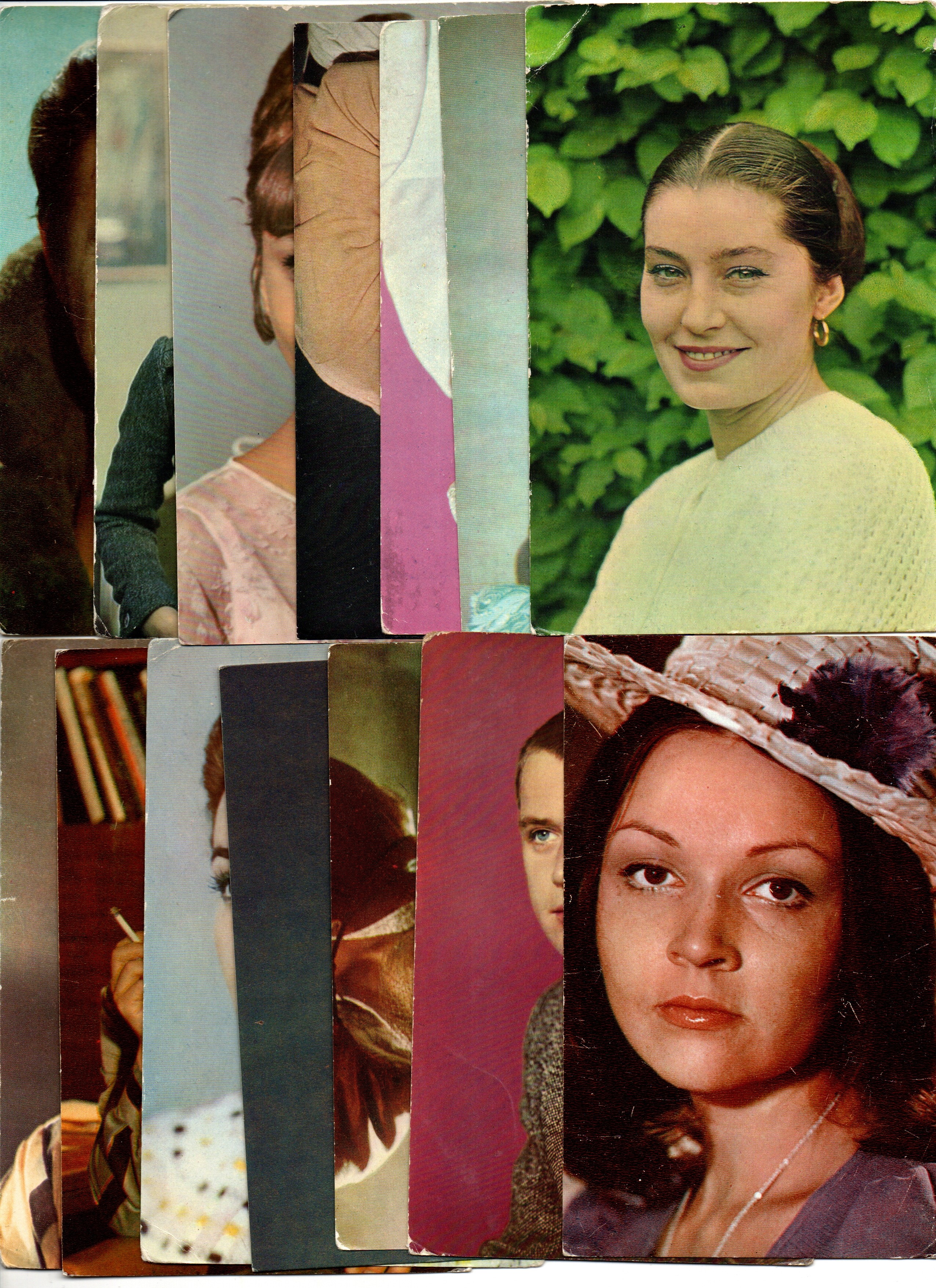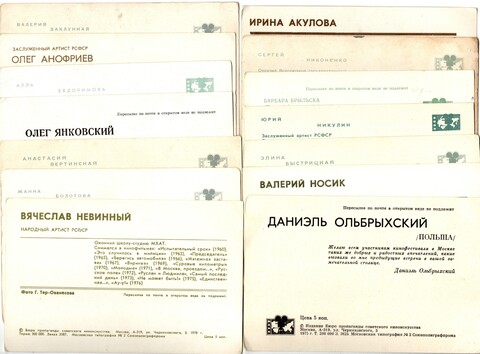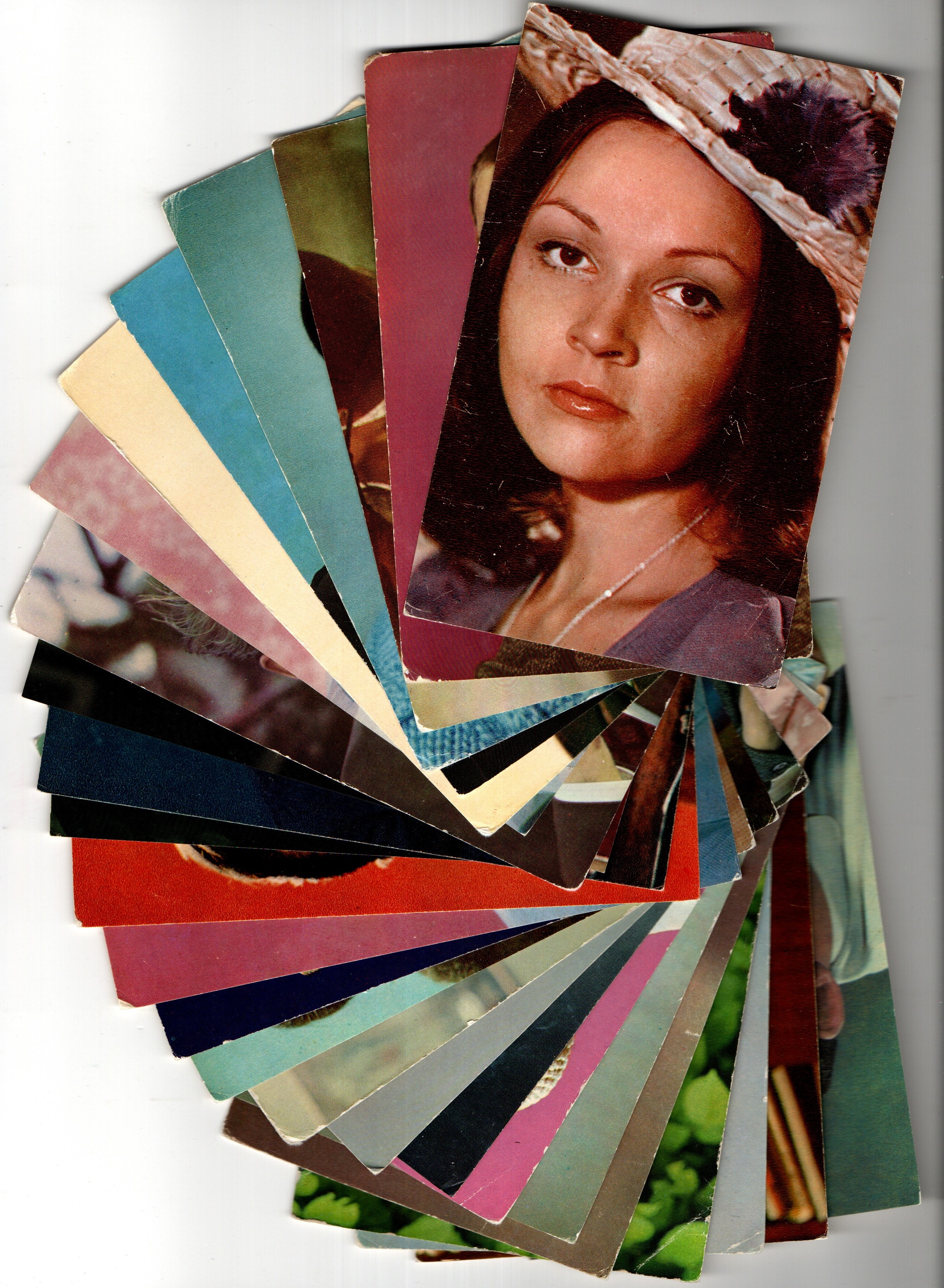 №35 Открытки Артисты и актёры СССР 1970–1980-е г. 25 штук. Цветные, чистые, без повторов