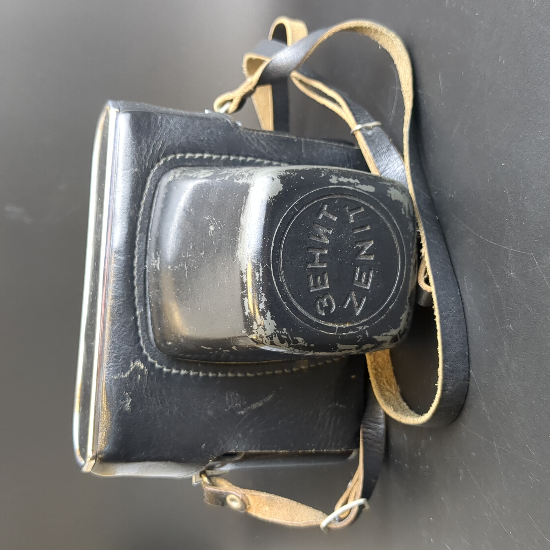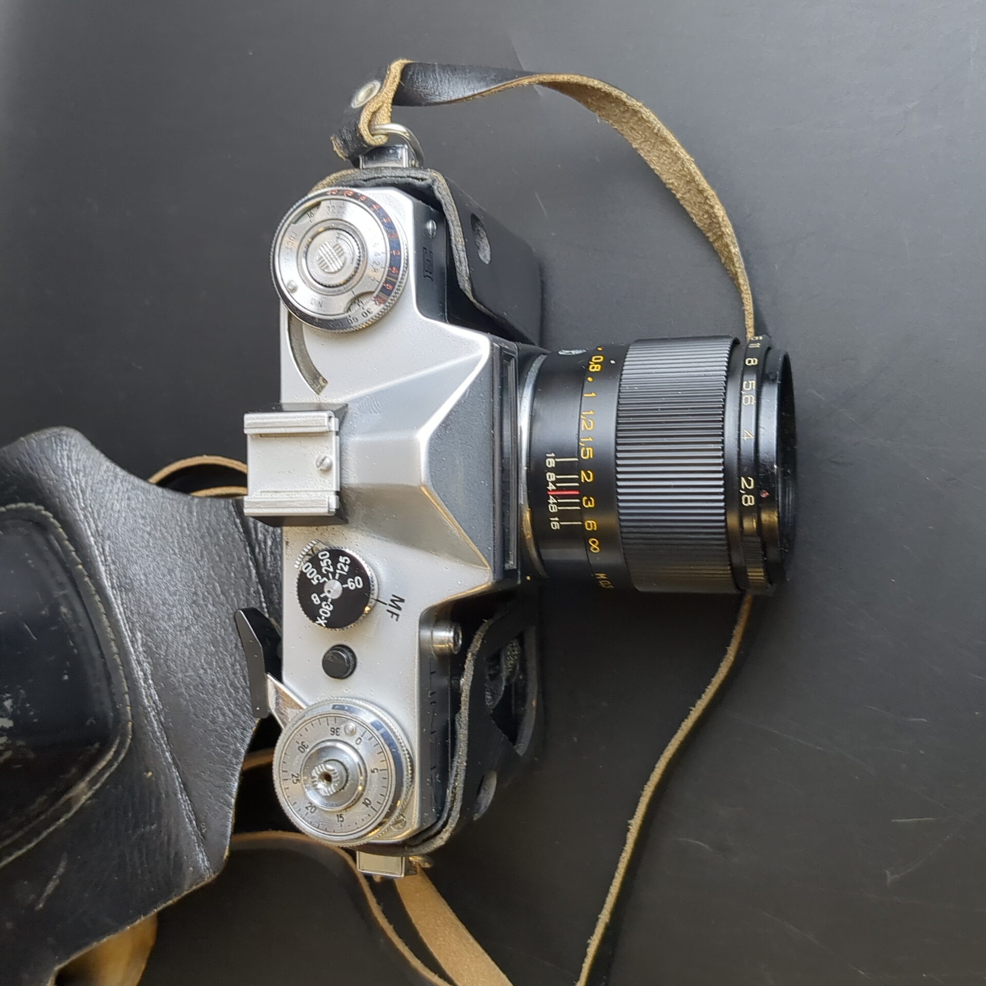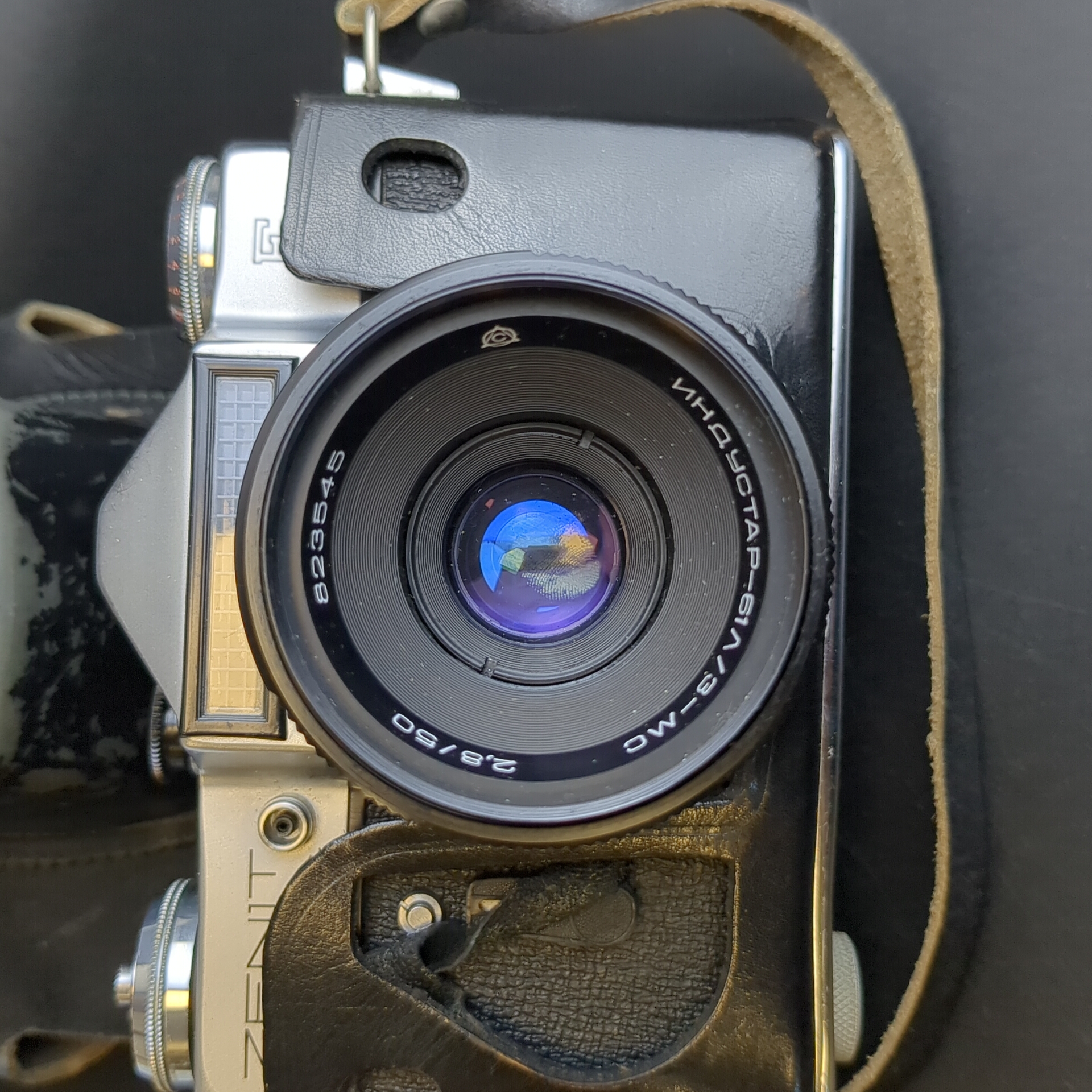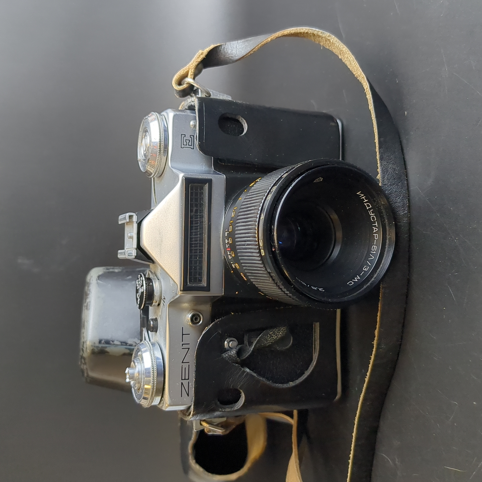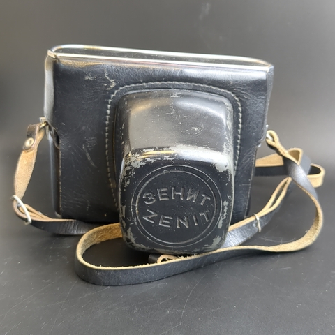 № 36 Фотоаппарат плёночный Зенит Е с объективом Индустар 61Л/3-МС в кофре, металл, стекло, кожа, Красногорский механический завод (КМЗ), СССР. Рабочий. Состояние на фото