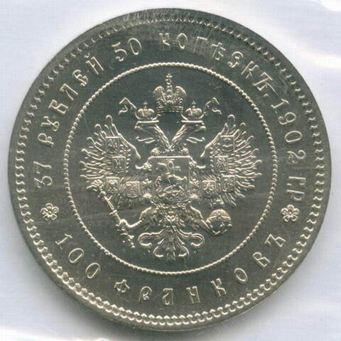 | Номинал: | 37 рублей 50 копеек/100 франков |