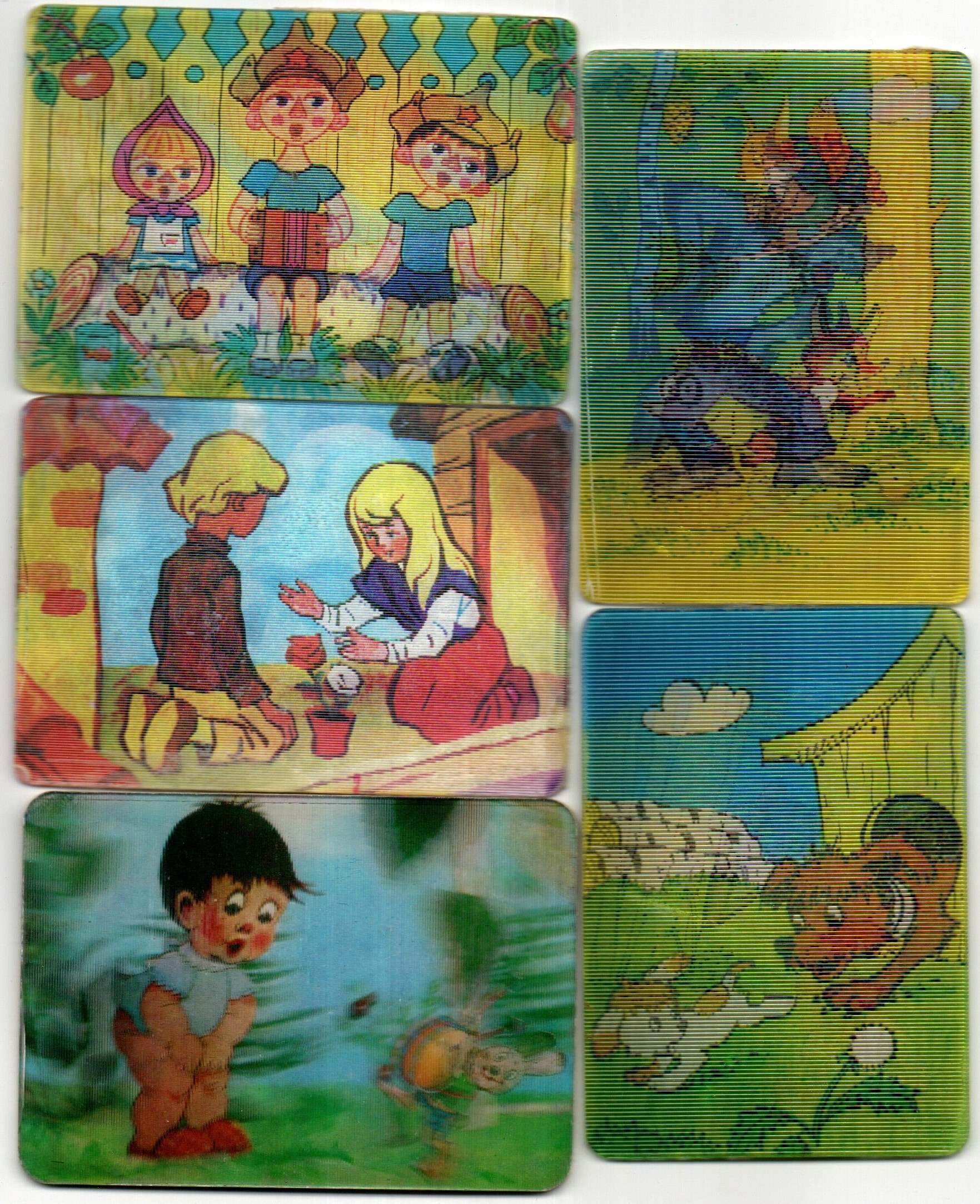 № 39 Набор из 5 стерео Календариков. Мультфильмы СССР 1979 г. Календарик Стерео мультфильмы : Чьи в лесу шишки? / Антошка / Снежная королева / Кто сказал мяу? / Заяц - барабанщик. Карманный календарик переливной объемный 3D. СССР. Художники СССР. Состояние на фото