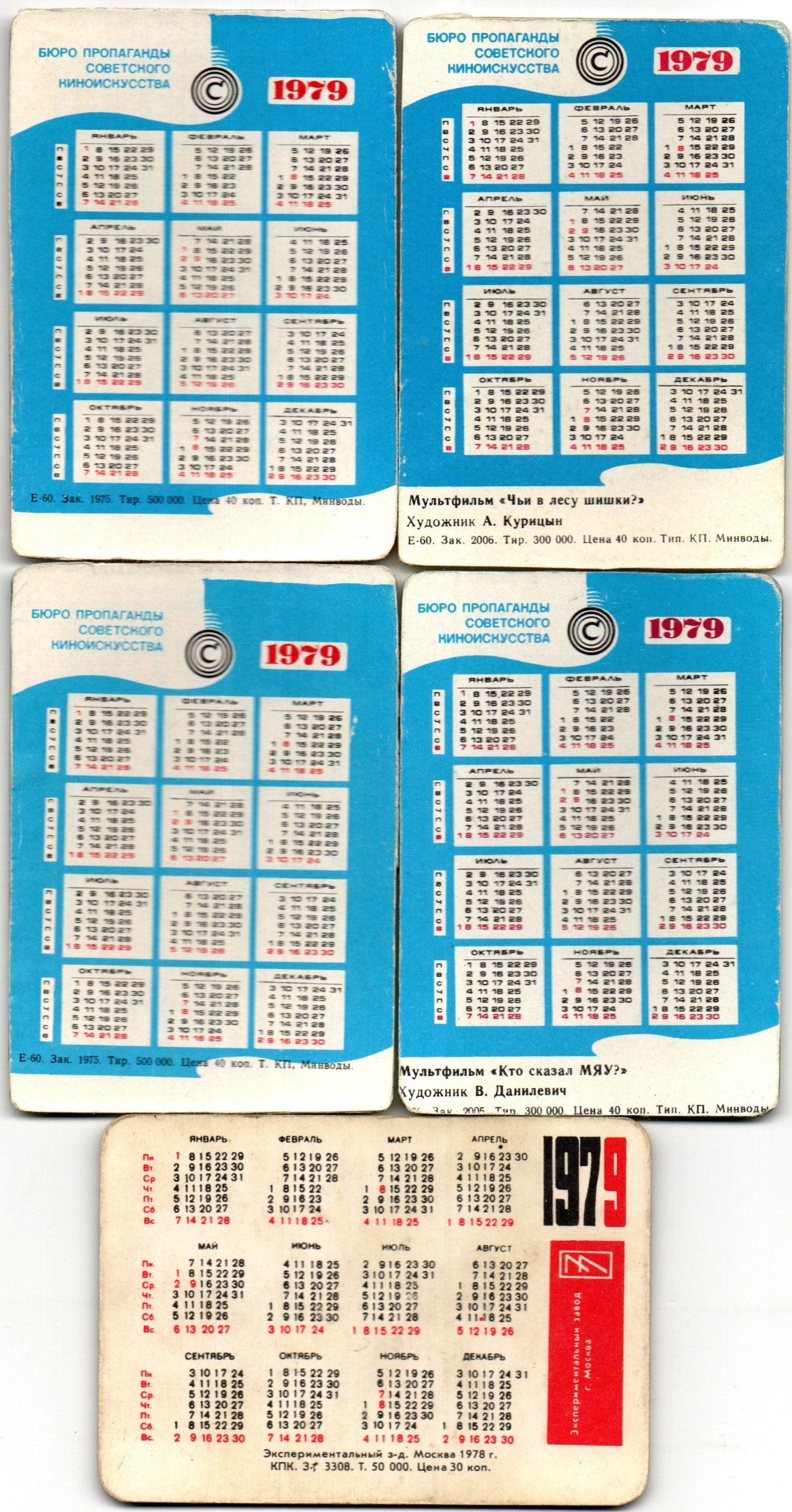 № 39 Набор из 5 стерео Календариков. Мультфильмы СССР 1979 г.