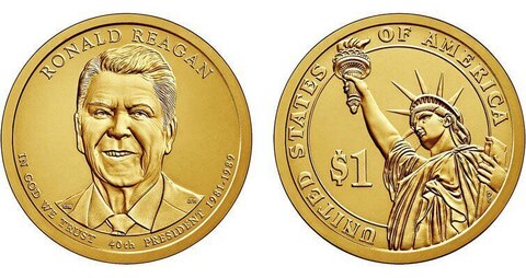 1 доллар США 2016 года. 40 президент Рональд Рейган.