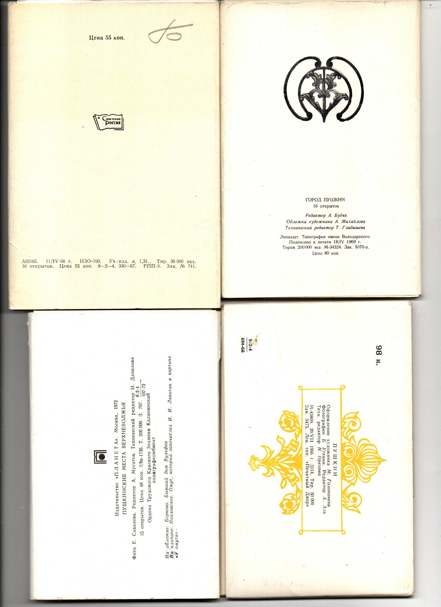4 набора открыток - 63 штуки - Тема Пушкин, Пушкинские места - СССР