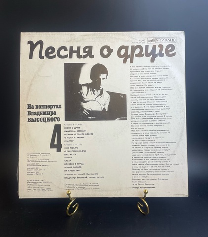 4 Выпуск Владимир Высоцкий - Песня о друге. На концертах Владимира Высоцкого. Виниловая пластинка 12 дюймов LP. Мелодия СССР 1988 год.