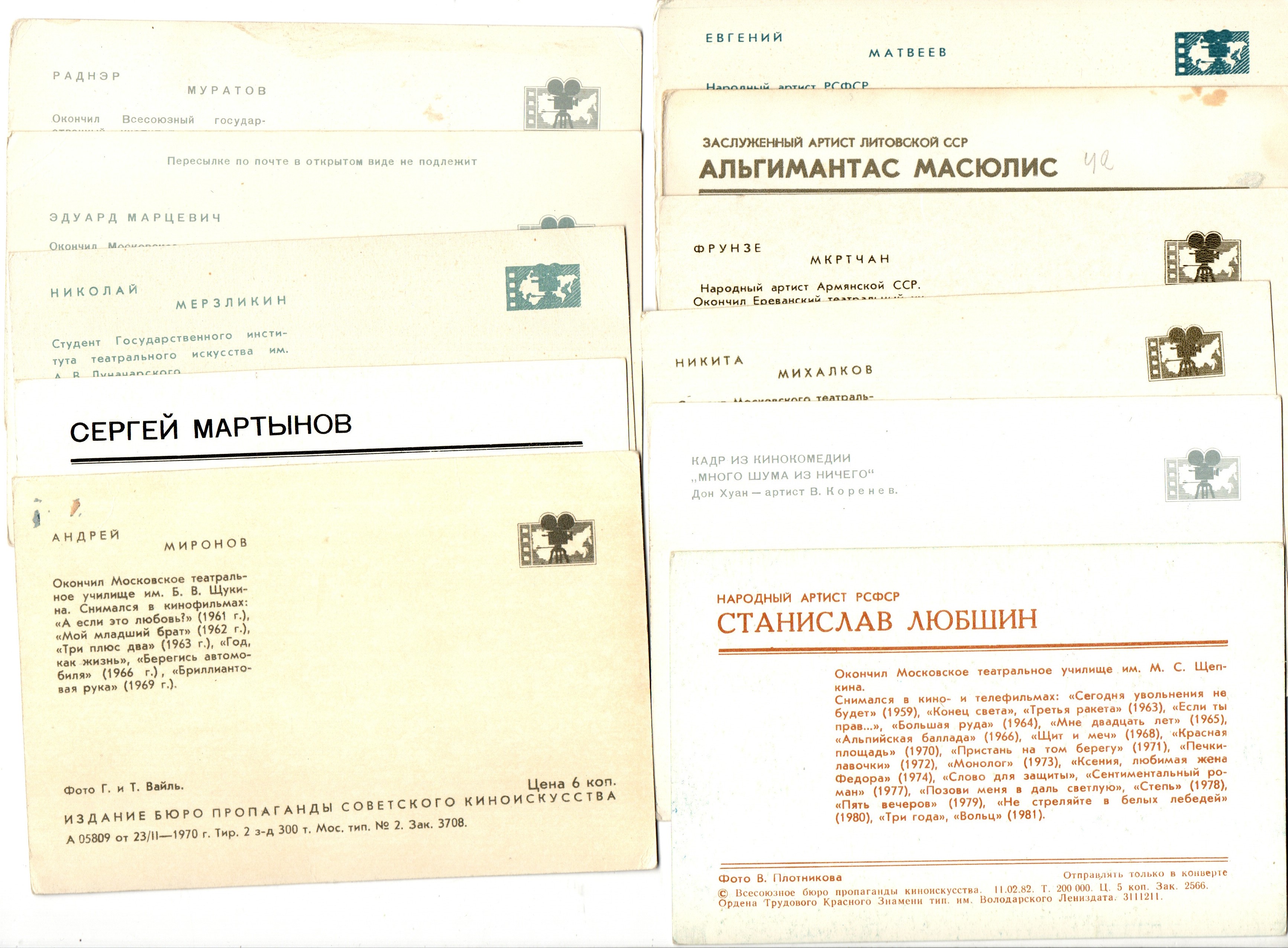 Подборка открыток Артистов и актёров театра и кино СССР 1970–1980-е г. 25 штук. Цветные, чистые, без повторов. Погрузитесь в атмосферу золотой эпохи советского театра и кино! В набор входит 25 оригинальных открыток с портретами артистов СССР 1970–1980-х годов .Кому подойдёт: коллекционерам советской фотооткрытки ценителям истории кино и театра СССР для оформления интерьера в стиле ретро для творческих проектов и вдохновения Отличный вариант подарка для любителей винтажной эстетики и эпохи 50–60-70-80 х годов.