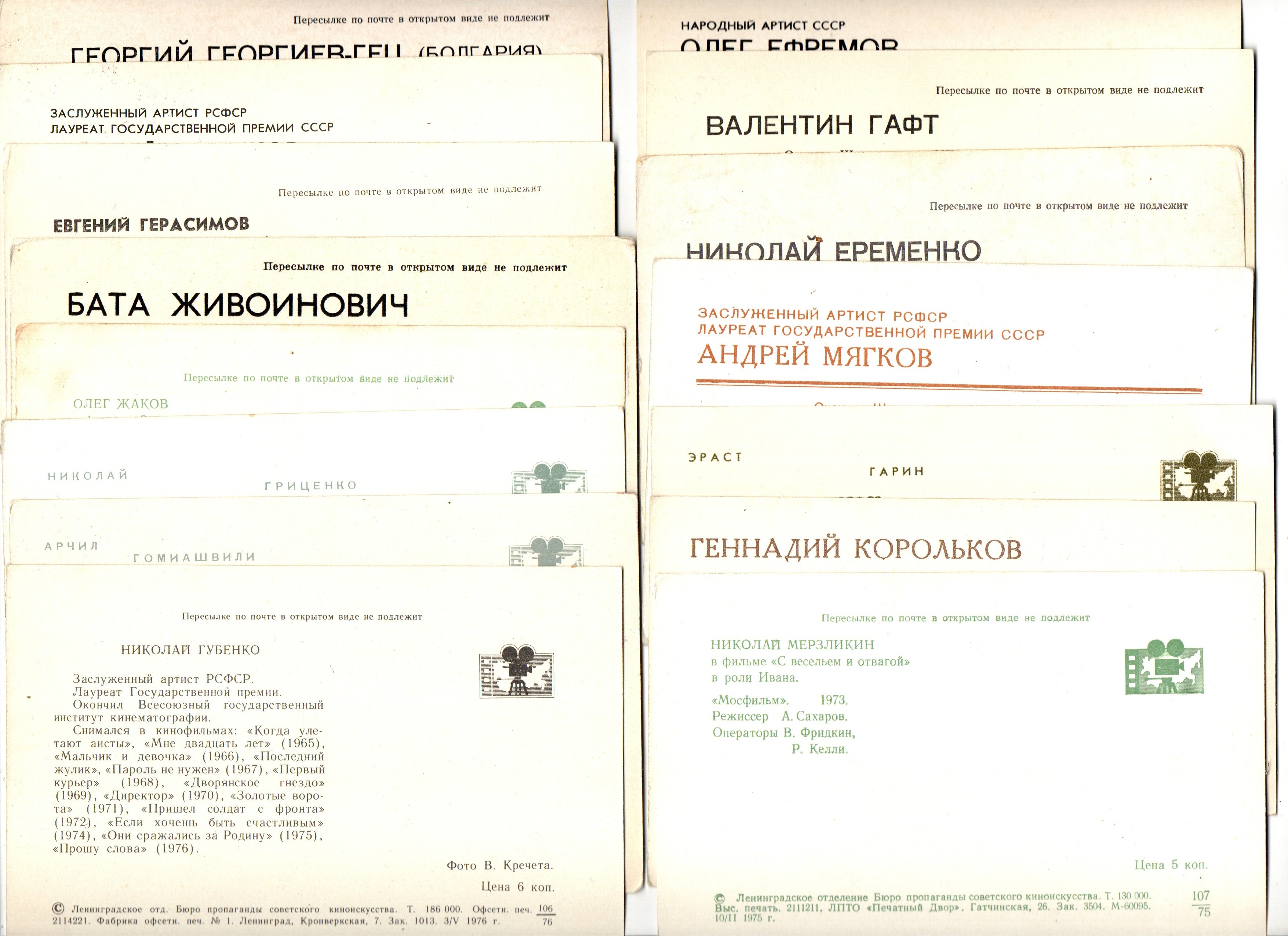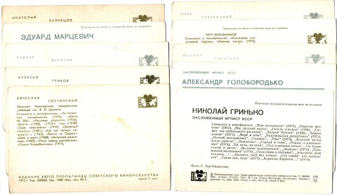№44 Открытки Артисты и актёры СССР 1970–1980-е г. 25 штук. Цветные, чистые, без повторов