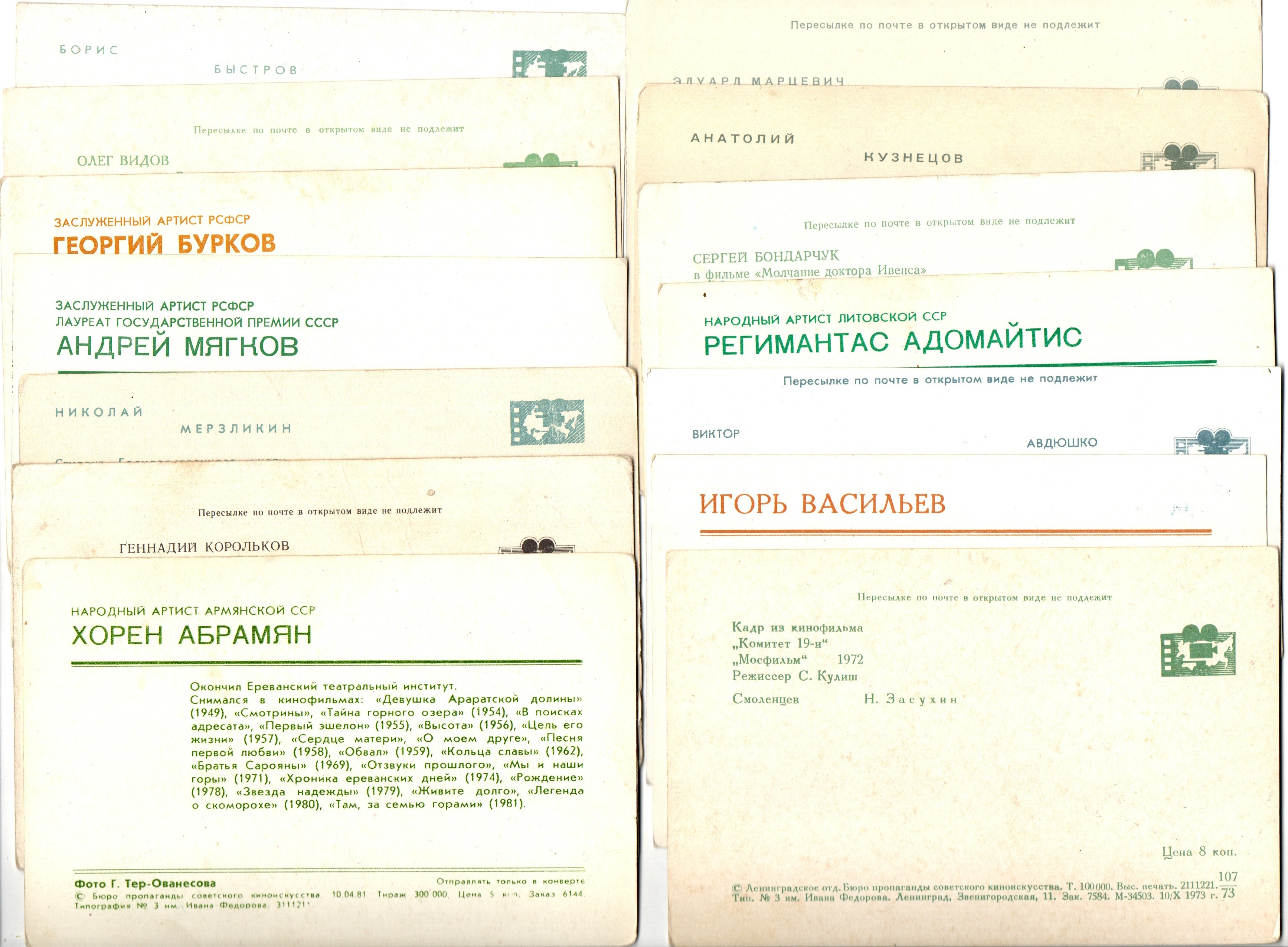 Подборка открыток Артистов и актёров театра и кино СССР 1970–1980-е г. 25 штук. Цветные, чистые, без повторов. Погрузитесь в атмосферу золотой эпохи советского театра и кино! В набор входит 25 оригинальных открыток с портретами артистов СССР 1970–1980-х годов .Кому подойдёт: коллекционерам советской фотооткрытки ценителям истории кино и театра СССР для оформления интерьера в стиле ретро для творческих проектов и вдохновения Отличный вариант подарка для любителей винтажной эстетики и эпохи 50–60-70-80 х годов.