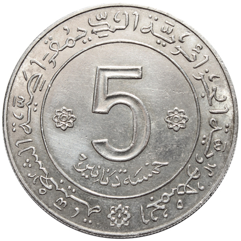 5 динаров. 10 лет независимости. Алжир. Серебро. 1972 год. XF-AU