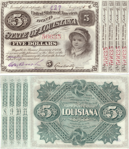 5 долларов 1886 год США (Луизиана) BOND UNC