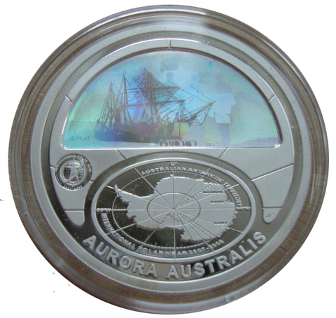 5 долларов 2009. Австралия. Северное сияние. Аврора Корабль Парусник Серебро Голограмма