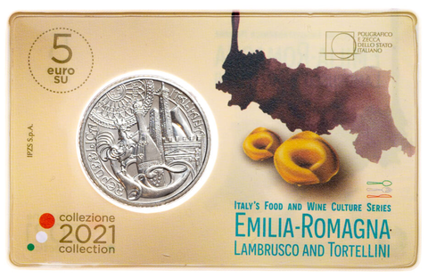 5 евро 2021 г. Эмилия Романия. Ламбруско и Тортеллини. Италия