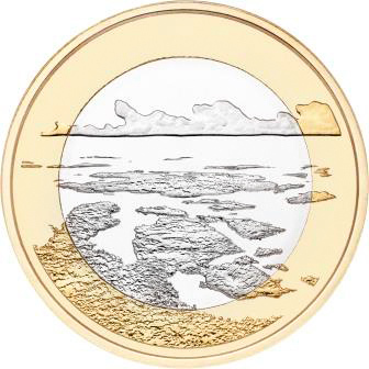 На аверсе памятной монеты Финляндии изображено Архипелаговое море, а на реверсе – карта страны. Памятная монета спроектирована Эркки Вайнио и Мари Метсо на основе фотографии, снятой Ханну Валласом.