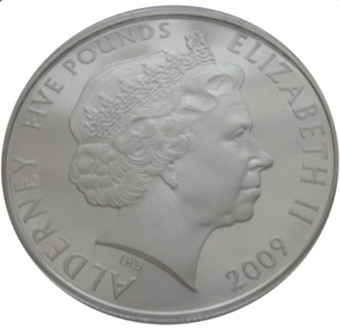 5 фунтов 2009 год. Моррис Минор. Классические британские автомобили. Олдерни. Серебро