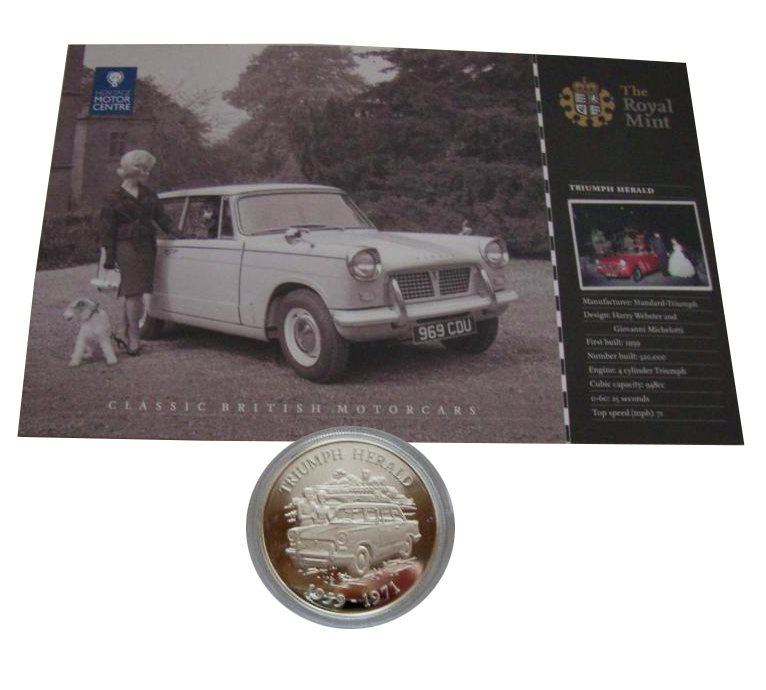 5 фунтов 2009 год. Олдерни. Триумф Геральд. Классические британские автомобили. Серебро