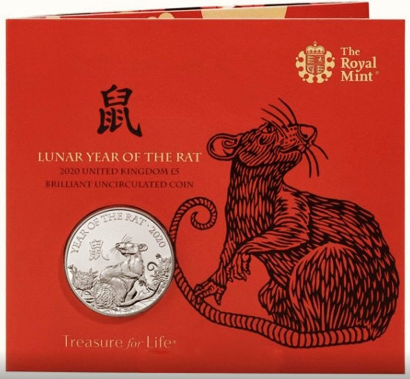 5 фунтов. Год Крысы 2020. Великобритания. 2019 год. В буклете