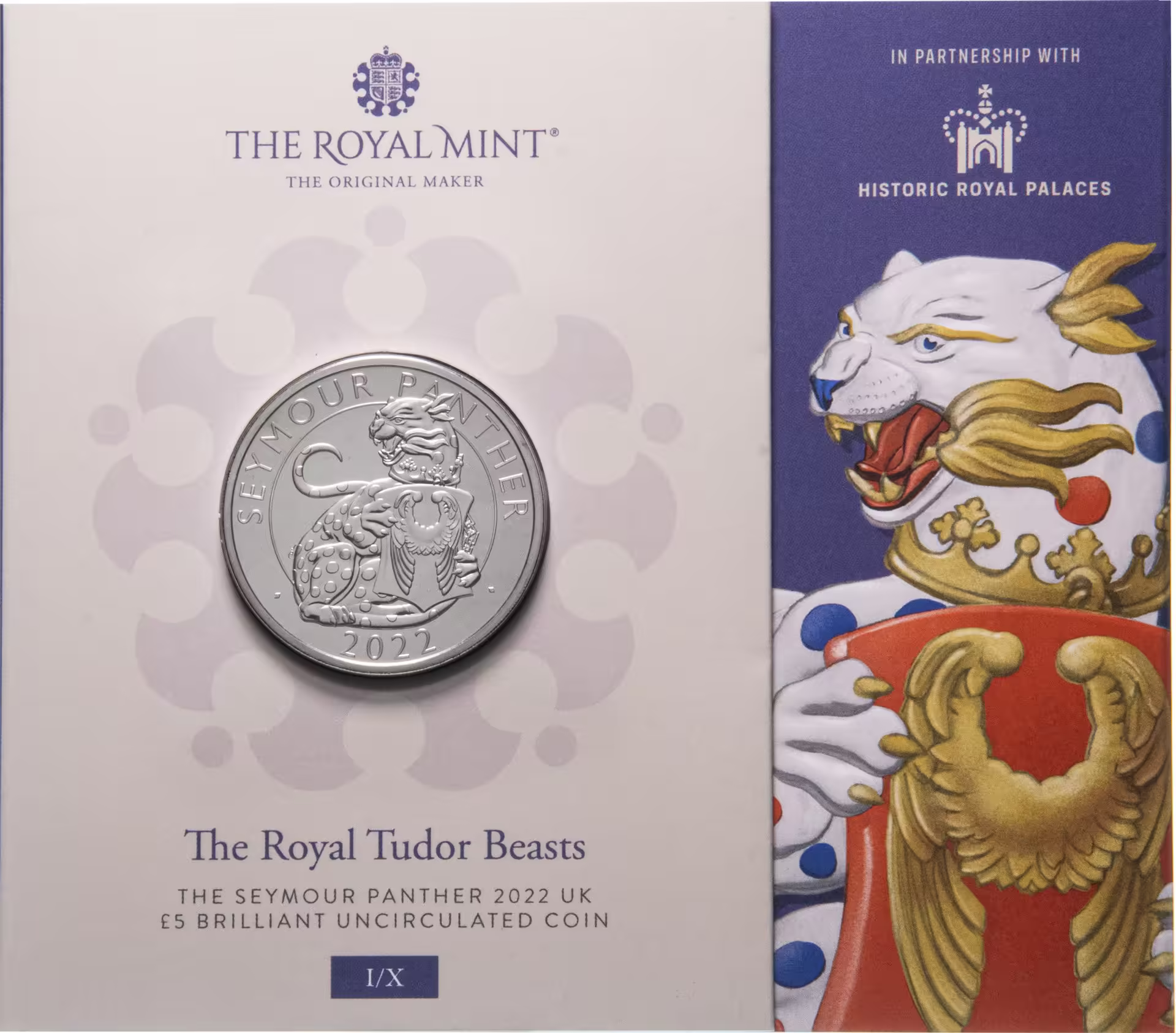 5 фунтов Великобритания 2022 год. ЗВЕРИ ТЮДОРОВ. Пантера Сеймура в буклете