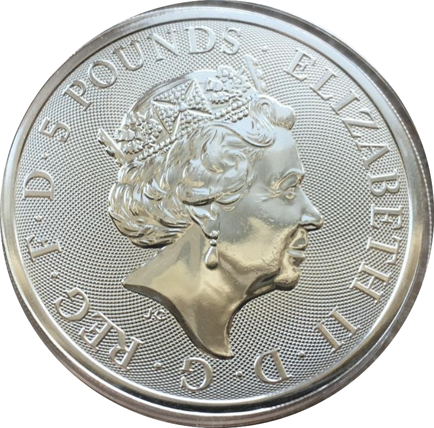 5 фунтов Йель . Королевские звери Тюдоров . 62,2 гр 2 oz . 2023 год