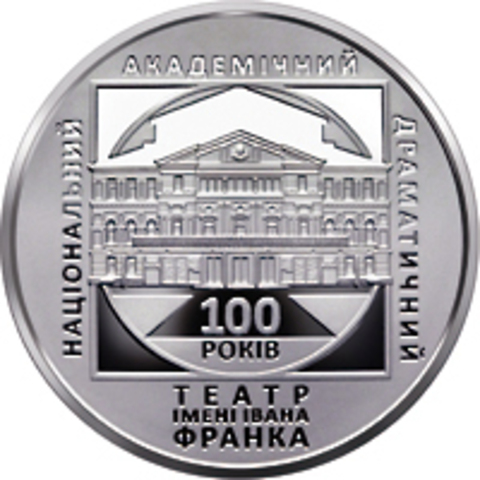 Памятная монета 5 гривен посвященная вековому юбилею легендарного Национального академического драматического театра имени Ивана Франко, который начал свою деятельность в 1920 году в Виннице.