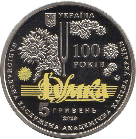 5 гривен. 100 лет Национальной заслуженной академической капелле Украины "Думка". 2019 год
