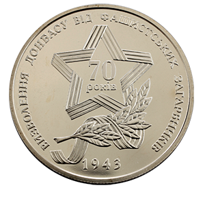 Монета посвящена 70-летию освобождения Донбасса. Благодаря решительным действиям войск Юго-Западного и Южногофронтов были спасены многие города, села и промышленные объекты Донбасса. 8 сентября 1943 - освобожден Донецк (Сталино), а 22 сентября 1943 - весь Донбасс.