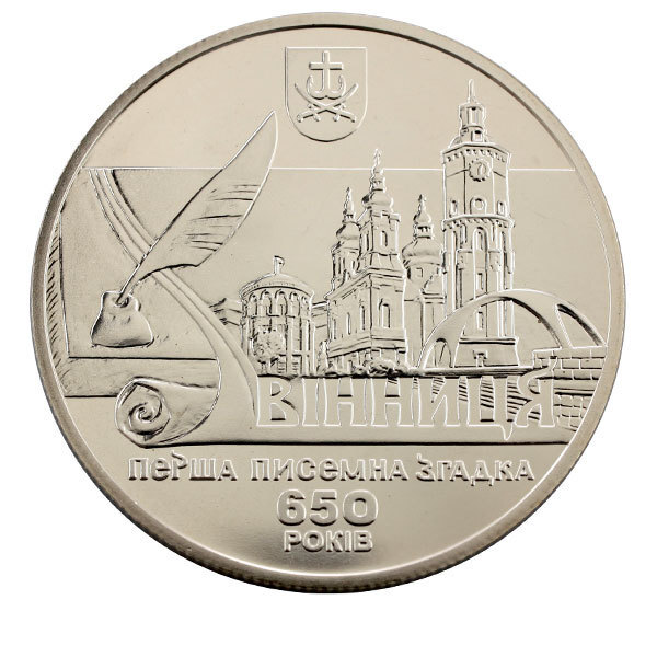 Монета посвящена административному и промышленному центру, одному из самых очаровательных городов Подолья, расположенному на берегу реки Южный Буг - Винницы, который впервые упоминается под 1363 годом как крепость.